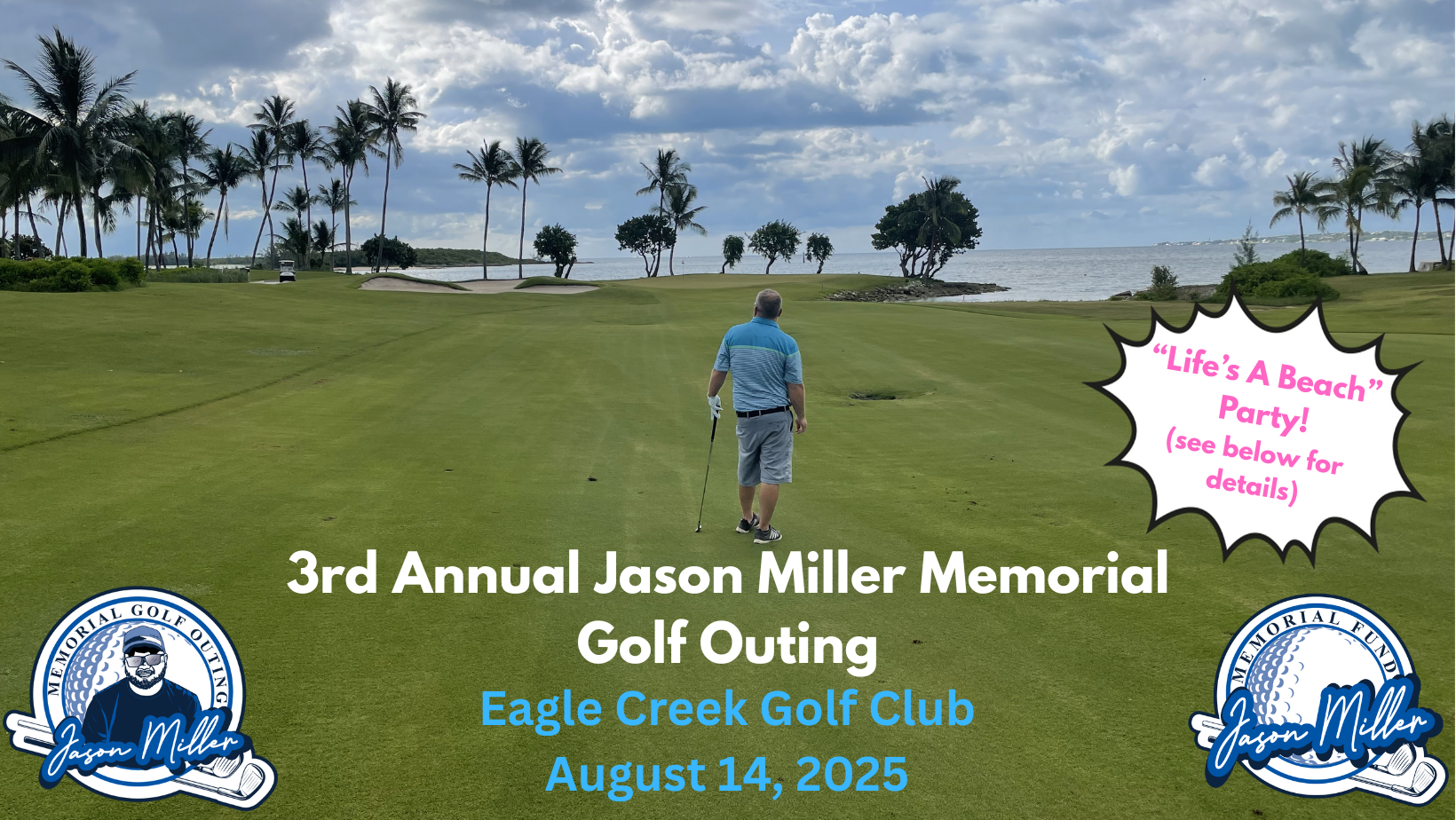 Join us for the 3rd Annual Jason Miller Memorial Golf Outing at Eagle Creek Golf Club on Thursday, August 14, 2025 honoring Jason Miller. Jason was an amazing man who showed incredible passion for his family, friends and career. He worked hard, but played harder- whether he was at home with his family, at the golf course, or the casino- he truly lived his life to the fullest. In February 2023 at the young age of 39, Jason was diagnosed with a very rare cancer called Clear Cell Sarcoma. He showed everyone who knew him, especially his young children, what it looked like to fight hard, stay positive and never give up. Unfortunately, after 4 months of treatments and fighting as hard as he could, Jason gained his angel wings on May 18, 2023. While his time on earth was cut short, his legacy will not be.